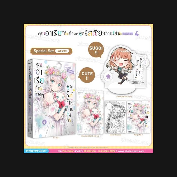 รายละเอียดของ Special Set มังงะ "คุณอาเรียโต๊ะข้างๆ พูดรัสเซียหวานใส่ซะหัวใจจะวาย เล่ม 4" (Tokidoki Bosotto Roshiago De Dereru Tonari no Alya-san Vol.4)
