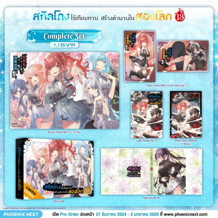 รายละเอียด Complete Set ของไลท์โนเวล "สกิลโกงไร้เทียมทาน สร้างตำนานในสองโลก เล่ม 13" (Isekai De Cheat Skill Wo Te Ni Shita Ore Wa, Genjitsu Sekai Womo Muso Suru Vol.13)