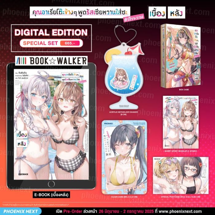 โปรดตรวจสอบก่อนชำระเงิน สินค้า (LN) Special Set (Digital Edition) คุณอาเรียโต๊ะข้างๆพูดรัสเซียหวานใส่ซะหัวใจจะวาย เบื้องหลัง มีหนังสือ E-Book ผ่านแอพพลิเคชัน BookWalker ซึ่งมีการจัดส่งเพียงสินค้าในเซ็ท ไม่จัดส่งหนังสือรูปเล่ม และไม่สามารถคืนสินค้าได้หลังจากสั่งซื้อ