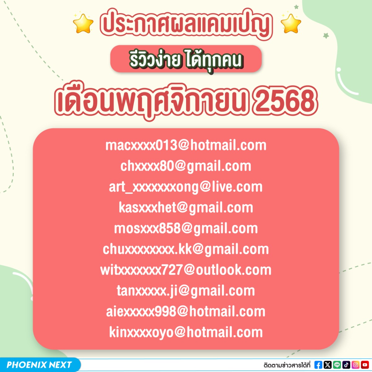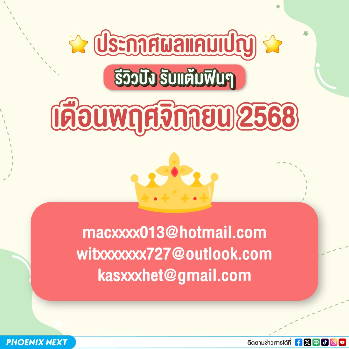 ผู้โชคดีที่ได้รับ Phoenix Point 50 คะแนน
