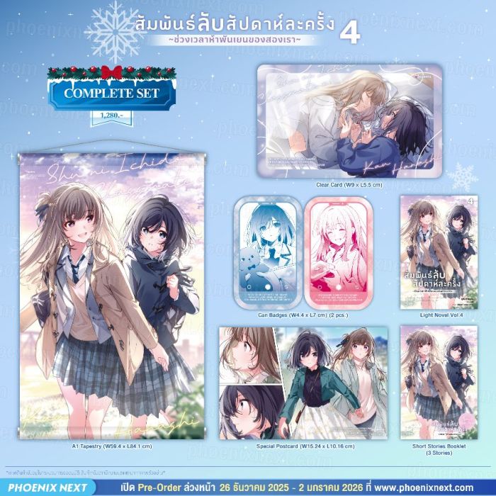 รายละเอียด Complete Set ไลท์โนเวล “สัมพันธ์ลับสัปดาห์ละครั้ง ~ช่วงเวลาห้าพันเยนของสองเรา~ เล่ม 4” (Shuu ni Ichido Classmate wo Kau Hanashi: Futari no Jikan, Iiwake no 5000-en Vol.4)