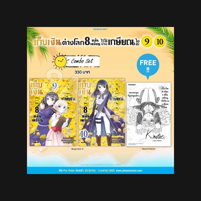 รายละเอียด Combo Set ของมังงะ 'เก็บเงินต่างโลก 8 หมื่นเหรียญไว้ใช้ยามเกษียณไงคะ 9 & 10' (Rogo ni Sonaete Isekai de Hachimanmai no Kinka wo tamemasu Vol.9 & 10 )
