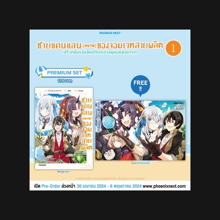 รายละเอียด Premium Set มังงะ “ ชายแดนแสนสบายของจอมเวทสายผลิต~สร้างเมืองสุขสันต์กับเหล่าอมุนษย์สุดแกร่ง!~ เล่ม 1” (Seisan Mahoushi no Rakuraku Henkyou Kaitaku: Saikyou no Ajin-tachi to White Kokka wo Kizukimasu! Vol.1)