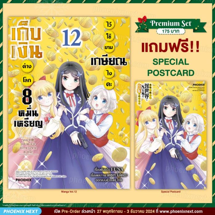 รายละเอียดมังงะ 'เก็บเงินต่างโลก 8 หมื่นเหรียญไว้ใช้ยามเกษียณไงคะ เล่ม 12' (Rogo ni Sonaete Isekai de Hachimanmai no Kinka wo tamemasu Vol.12) [แถมฟรี Postcard 1 ใบ (ขนาด 6 x 4 นิ้ว)]