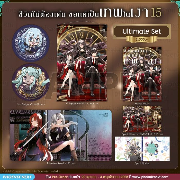 รายละเอียด Ultimate Set มังงะ “ชีวิตไม่ต้องเด่น ขอแค่เป็นเทพในเงา เล่ม 15” (Kage no Jitsuryokusha ni Naritakute! Vol.15)