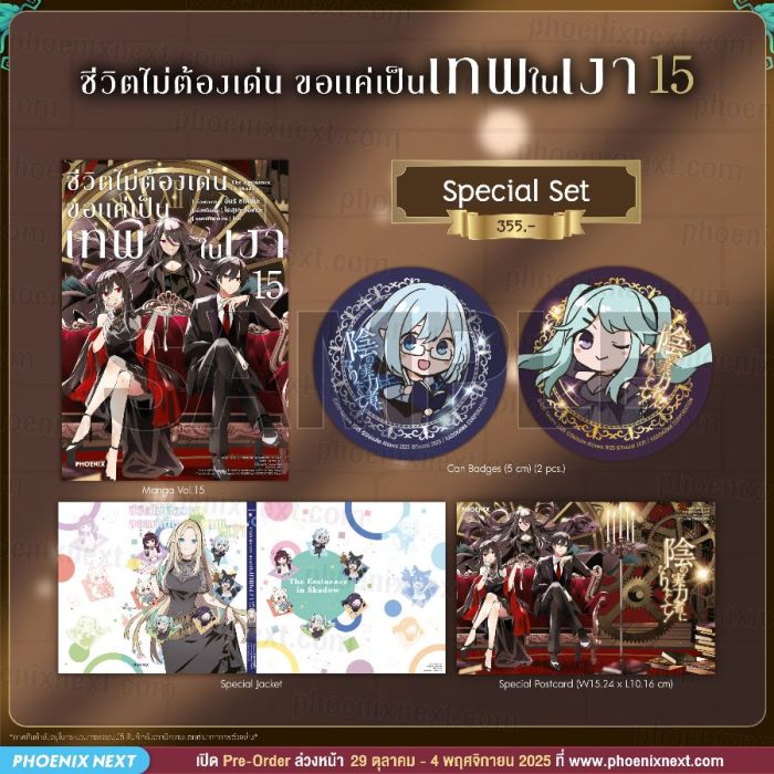 รายละเอียด Special Set มังงะ “ชีวิตไม่ต้องเด่น ขอแค่เป็นเทพในเงา เล่ม 15” (Kage no Jitsuryokusha ni Naritakute! Vol.15)