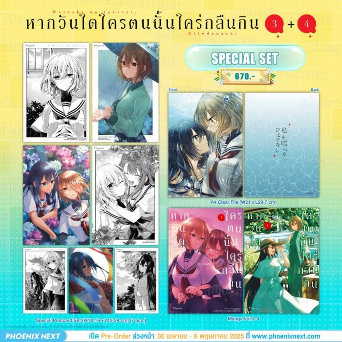 รายละเอียด Special Set มังงะ "หากวันใดใครตนนั้นใคร่กลืนกิน เล่ม 3-4" (Watashi wo Tabetai, Hitodenashi Vol.3-4)