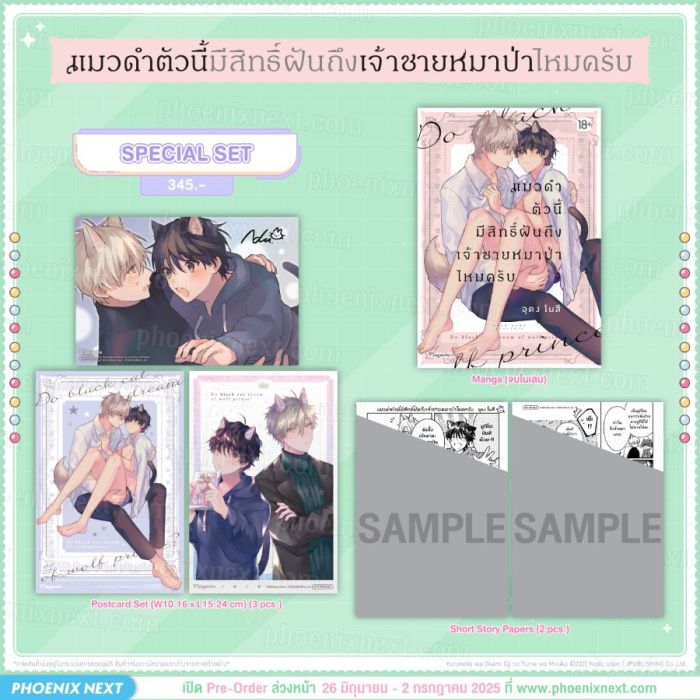 รายละเอียด Special Set มังงะ “แมวดำตัวนี้มีสิทธิ์ฝันถึงเจ้าชายหมาป่าไหมครับ” (Kuroneko wa Ookami Ouji no Yume wo Miru ka) **จบในเล่ม